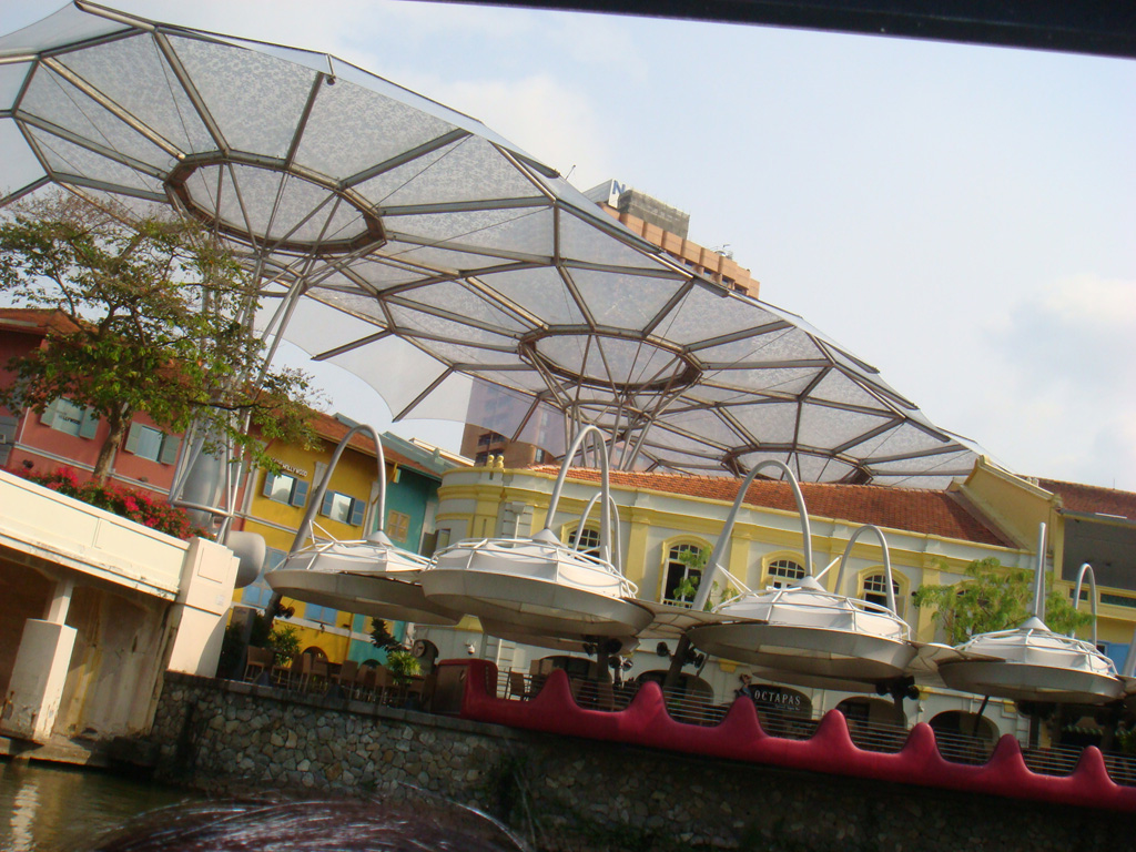 在船上拍的照片,那些長得像吊鐘花的東西是遮陽篷嗎?造型挺特別的