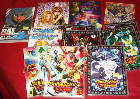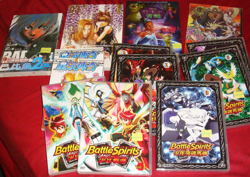 今天難得出了門,上圖就是採購的結果,買到【少年戰魂】的DVD好開心!!(順便把【少年突破馬神】全套一起掃回家,一片光碟裡放十集算是滿能讓我接受的範圍,不會感覺太貴)