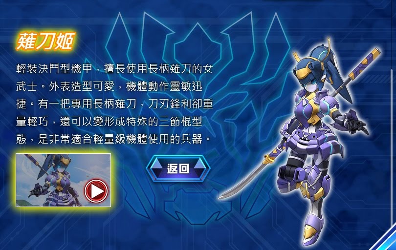 鮮奶覺得薙刀姬很可愛,可惜是只有一星的弱小機甲,出場機會大概不會太高