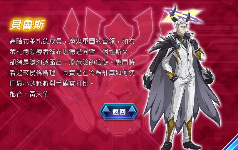 貝魯斯頭上兩個環一黑一白非常特別,感覺背後有一段故事,只是以過去的經驗來看,這段故事得靠觀眾自己腦補了