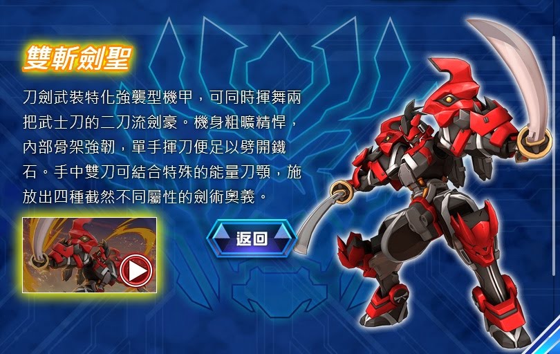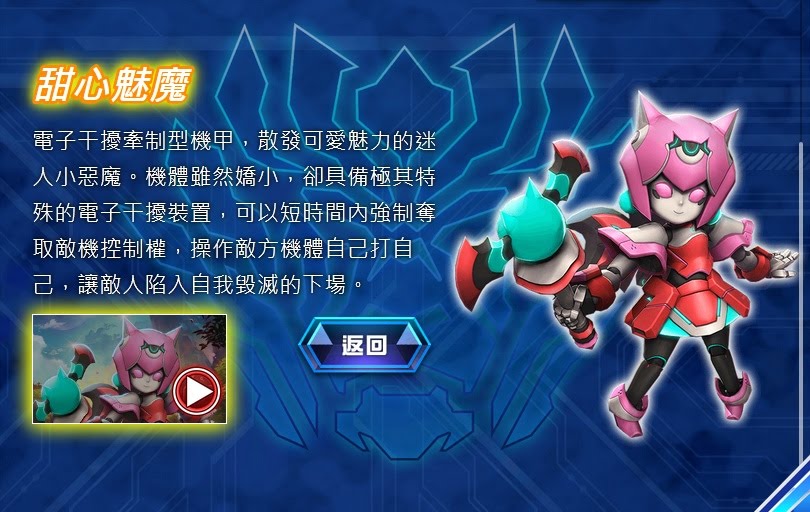這台機甲其中一個招式是操控對手,對手不但會自己打自己,還會形象全毀地在地上打滾,相當可怕…XD 讓人很想看重武裝悍將滾地的樣子