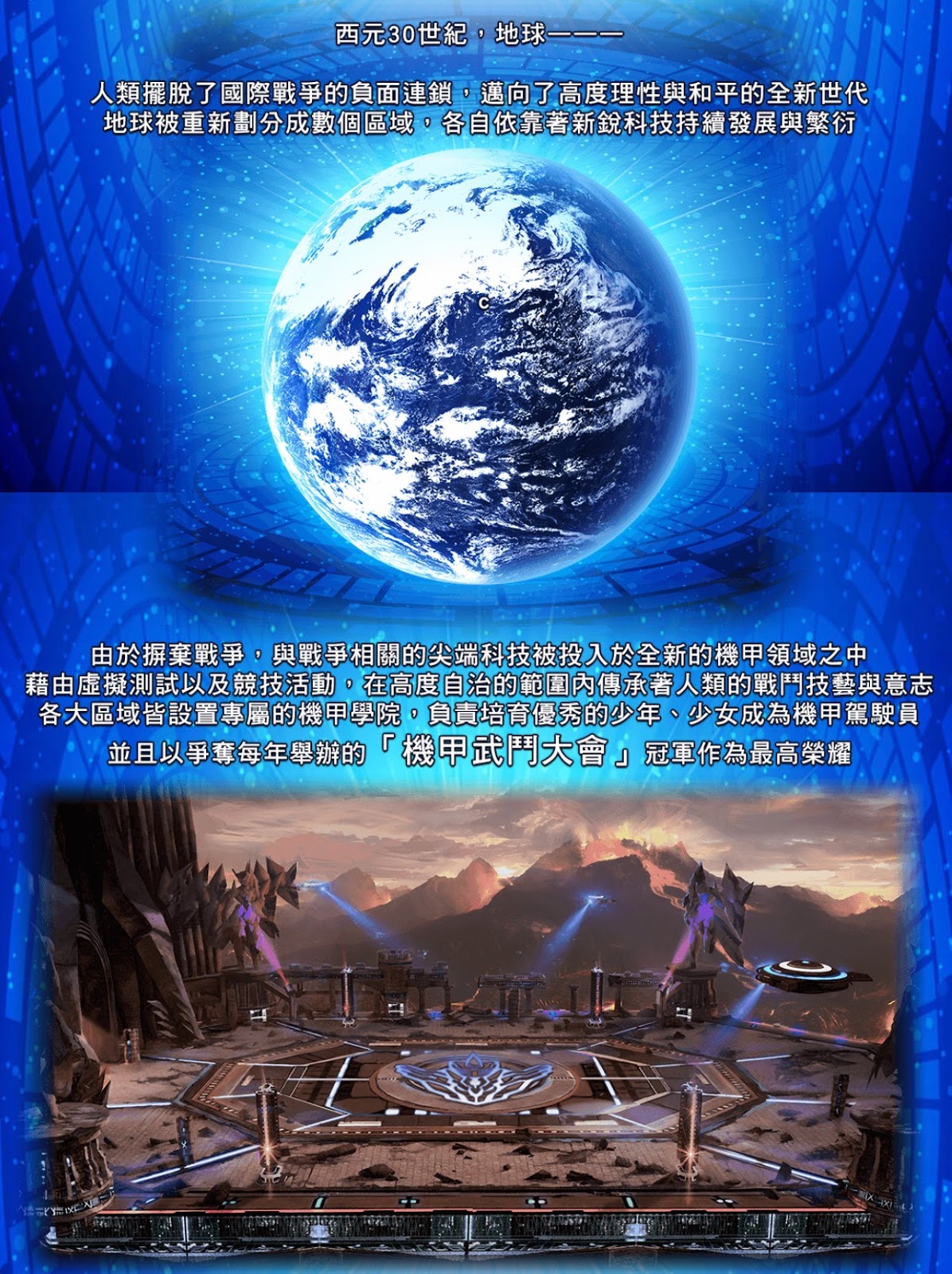 附帶一提,官網世界觀介紹提到地球各大區域培養機甲駕駛員參加機甲武鬥大會,不過並未說死到底有幾個區域