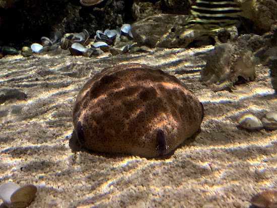 這項解說我們看了兩次,第一次因為太晚進場只看到後半段,第二次才完整看到。前半段會有動畫海牛即時與解說人員、現場觀眾互動,還蠻酷的。後半段則會真正看到大水缸裡的海牛,同時會有潛水員(穿著骷髏圖案潛水衣)餵食蔬菜。