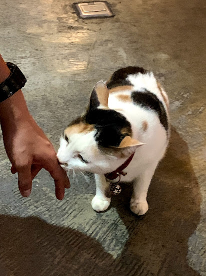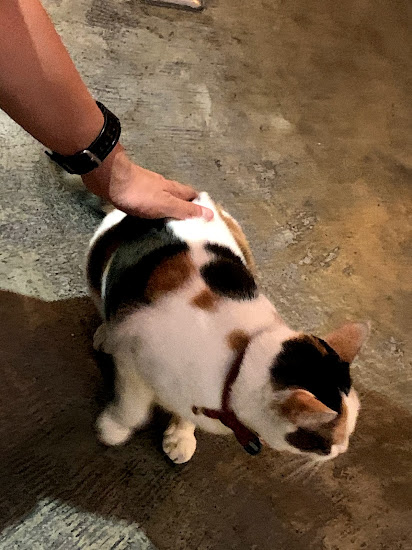 隔壁桌的客人摸了貓,鮮奶也摸了貓。