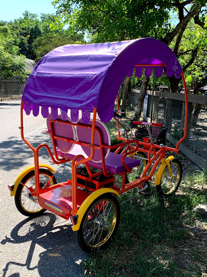 原本在電動車與較經濟實惠的自行車之間猶豫,不過後來發現園區真的太大,陽光又強,選擇電動車是對的。