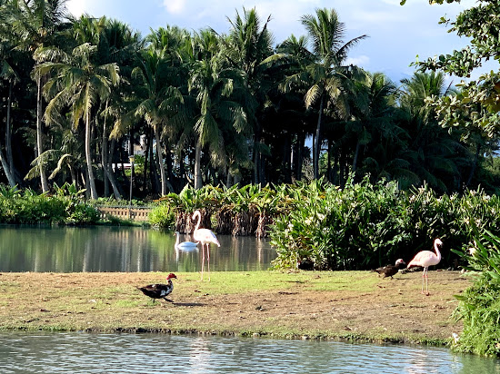 園區很大,因此租了三小時$600的雙人座電動車,由鮮奶駕駛,我負責當乘客。