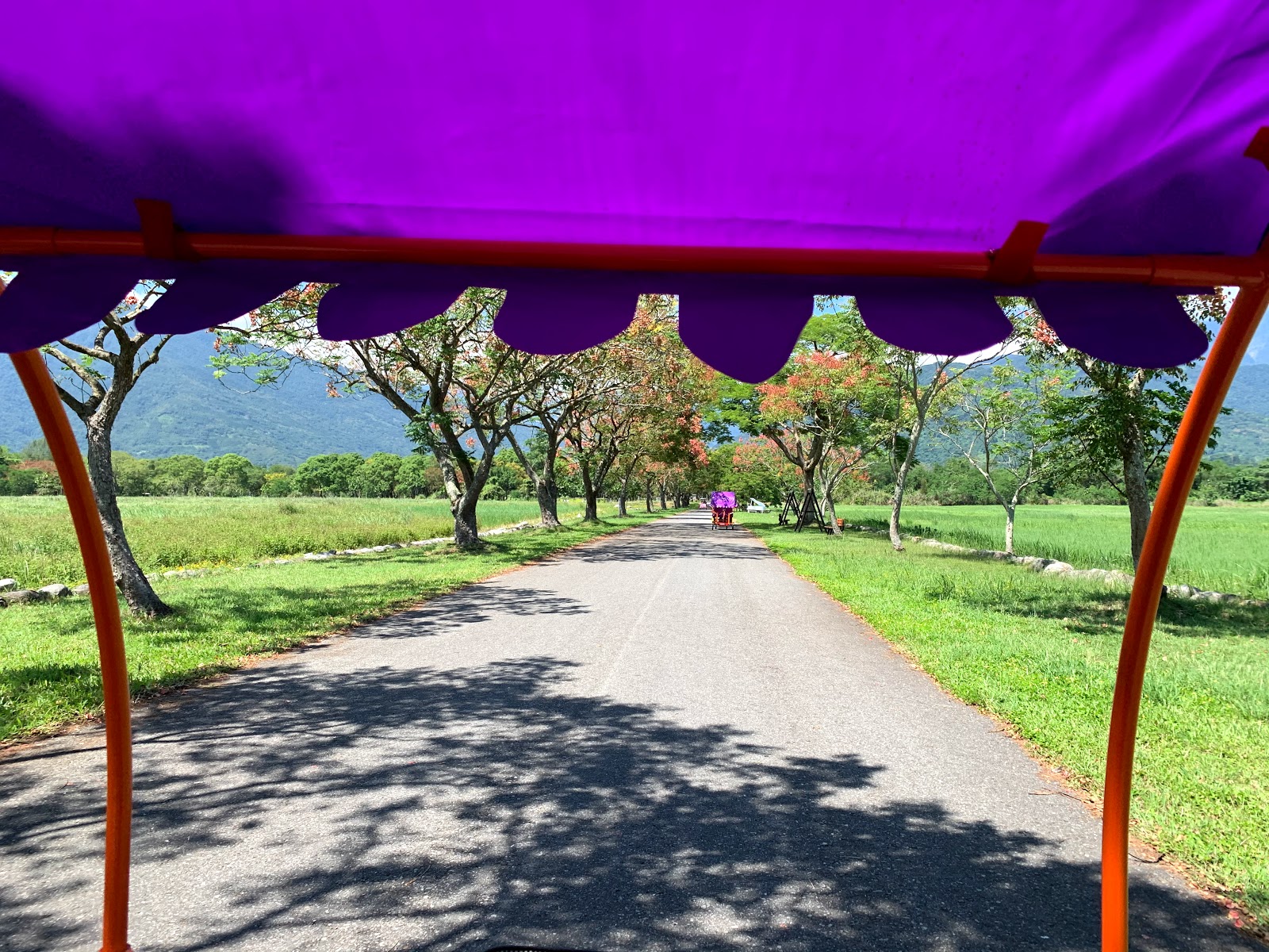 園區很大,因此租了三小時$600的雙人座電動車,由鮮奶駕駛,我負責當乘客。