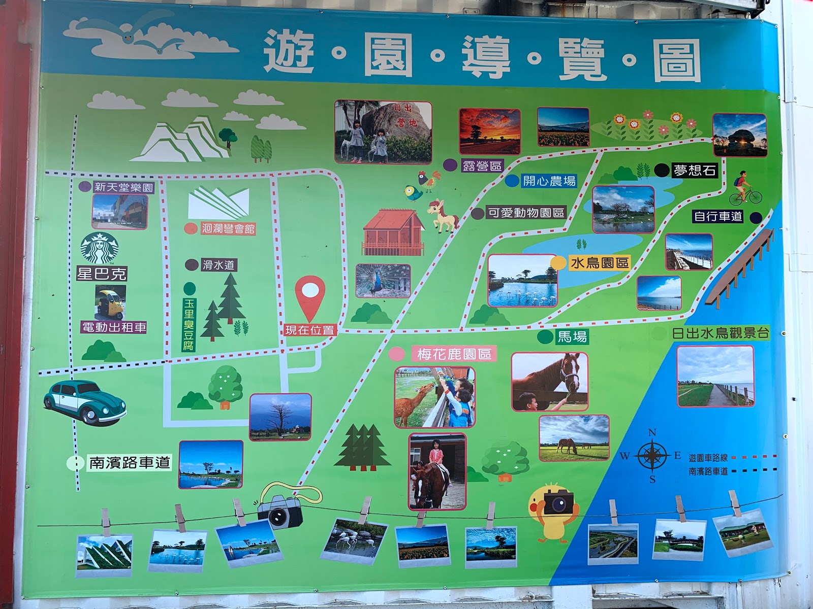 兆豐農場是這次車程最久的行程,園區門口就有一個台鐵車站「林榮新光車站」,但班次不多,因此還是選擇從花蓮市騎機車過去,對我來說稍微遠了些,不過路很寬、車又少,還算好騎。