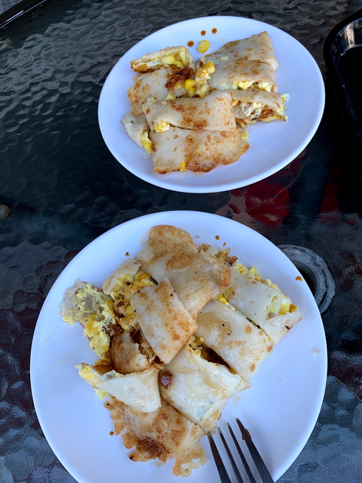 蛋餅周圍煎得酥脆焦香,口感像蘿蔔糕。