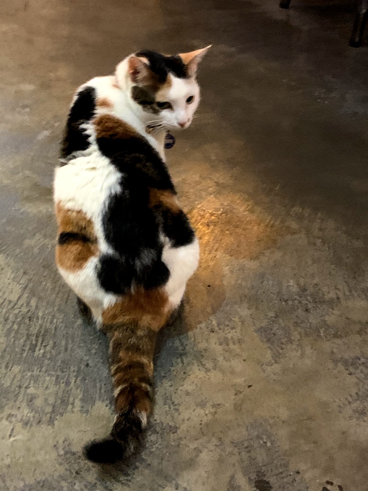 隔壁桌的客人摸了貓,鮮奶也摸了貓。