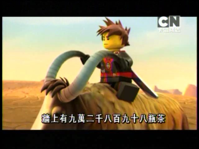 忍者們騎著長毛牛出發(應該是牛吧?),赤地經過一番努力,好不容易才爬上牛背XD