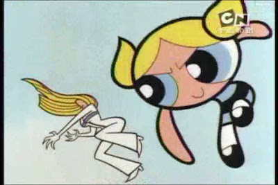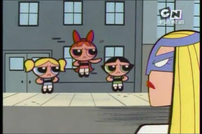 到了最後,小女警再也想不出除了神力女超人以外的女性超級英雄。(同樣的梗,在電影版對花花的幕後訪談裡又被拿來玩了一次,不過那次的例子除了神力女超人之外還多了一位鷹女)